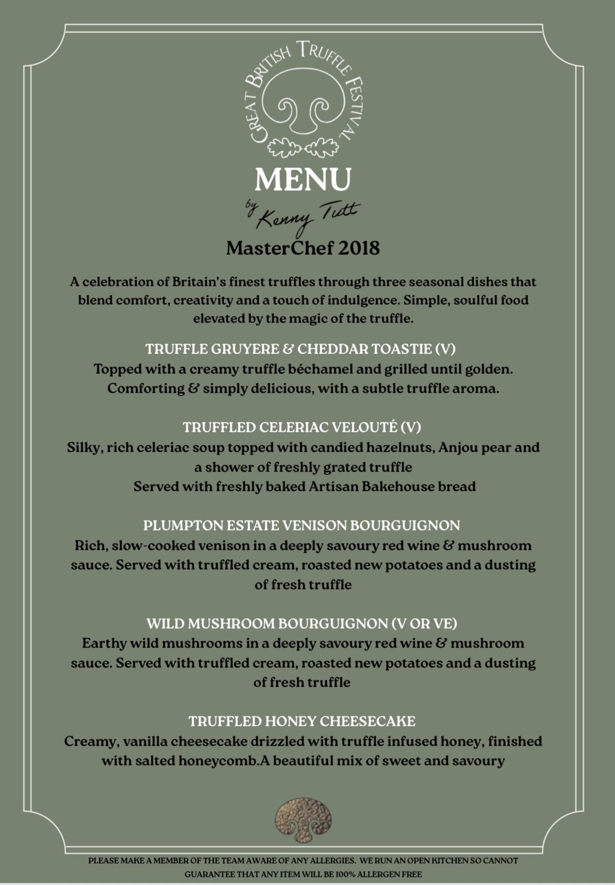Kenny was the MasterChef Champion 2018. Kenny opened his first restaurant, Pitch, in his hometown of Worthing within a year of winning MasterChef. He has also headlined and hosted food festivals and events across the UK and partnered on sell out pop ups and supper clubs.
